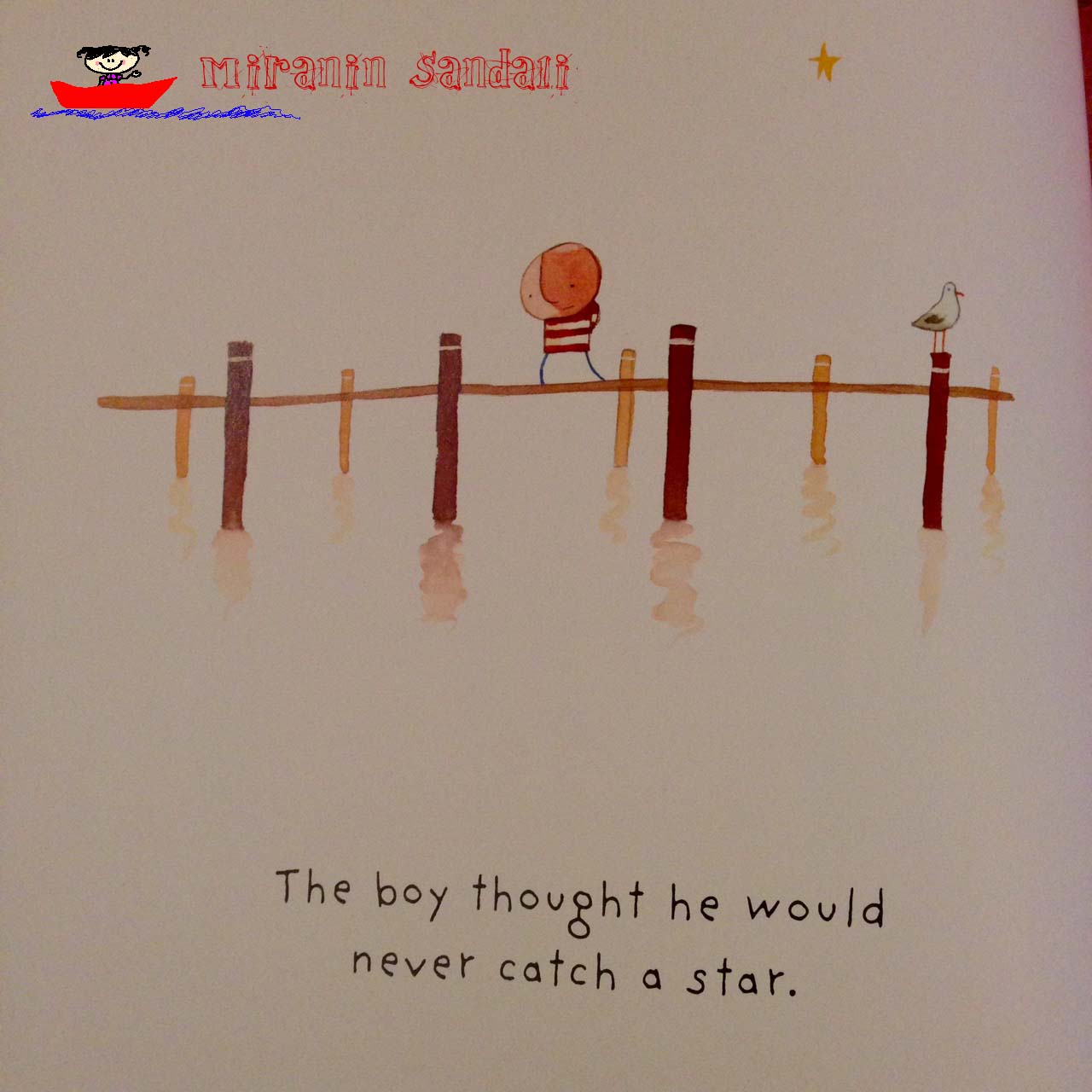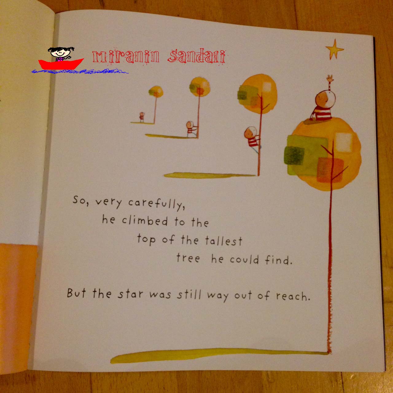 Yıldızları çok seven bir çocuk kendisinin de bir yıldızı olmasını ister. Bir sürü yollar dener. Ama bir türlü gökyüzüne ulaşamaz. Tam artık umutsuzluğa düştüğü anda karşısına bir yıldız çıkar. Oliver’ın kitaplarında sözcüklerdense resimler daha çok şey anlatıyor bence.